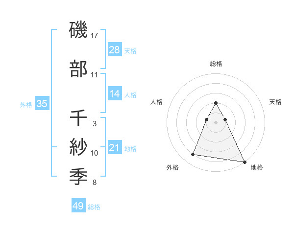 磯部 千紗季さんを姓名の画数から五運を鑑定