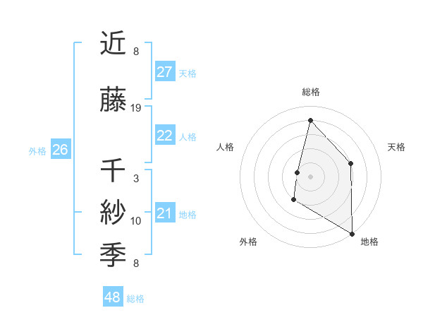 近藤 千紗季さんを姓名の画数から五運を鑑定