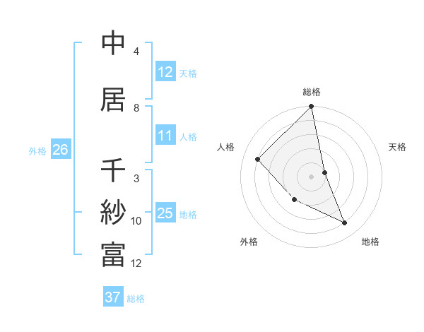 中居 千紗富さんの総格は37画の5点!