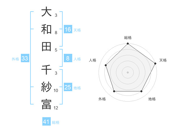 大和田 千紗富さんを姓名の画数から五運を鑑定