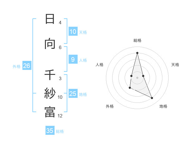 日向 千紗富さんを姓名の画数から五運を鑑定