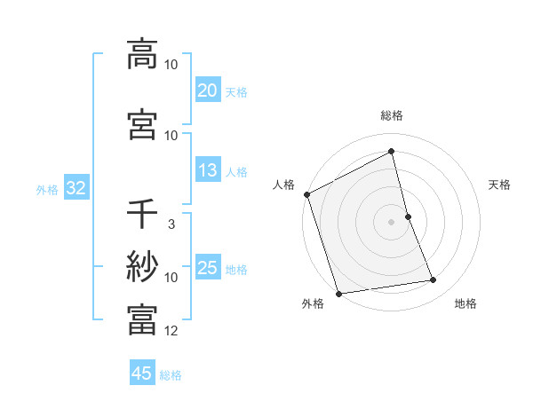 高宮 千紗富さんを姓名の画数から五運を鑑定