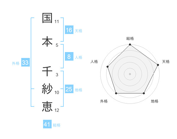 国本 千紗恵さんを姓名の画数から五運を鑑定