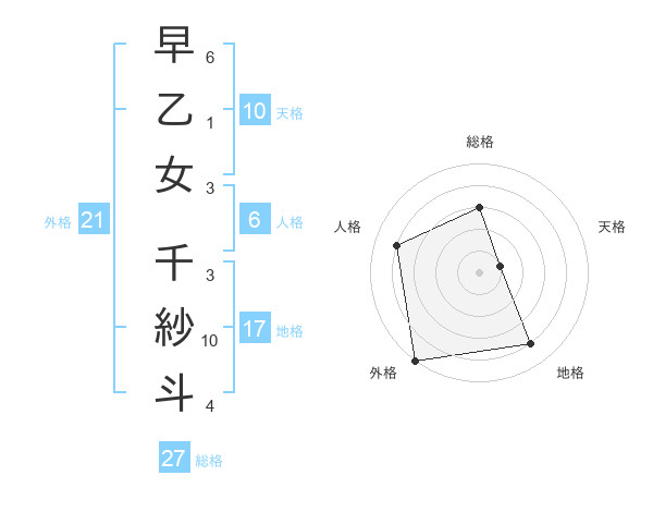 早乙女 千紗斗さんを姓名の画数から五運を鑑定