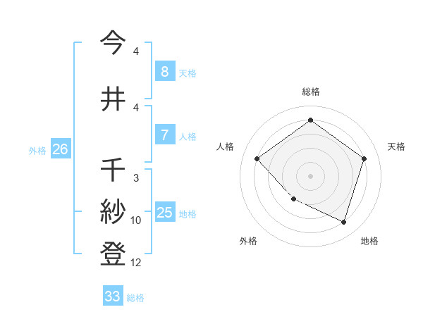 今井 千紗登さんを姓名の画数から五運を鑑定