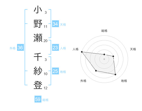 小野瀬 千紗登さんの地格は25画の4点!