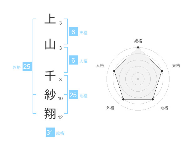 上山 千紗翔さんを姓名の画数から五運を鑑定