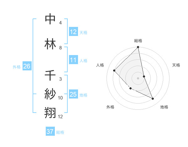 中林 千紗翔さんの総格は37画の5点!