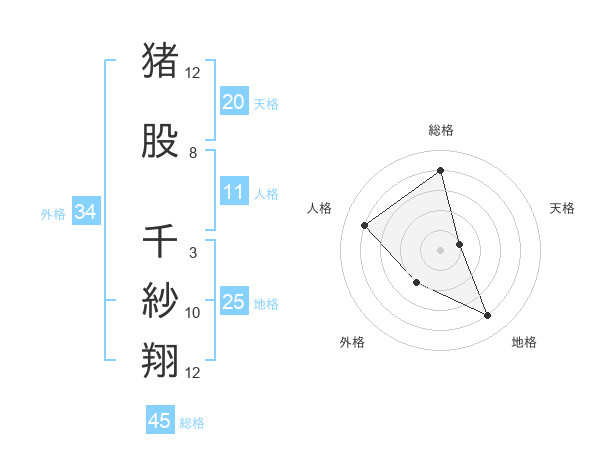 猪股 千紗翔さんを姓名の画数から五運を鑑定