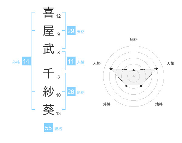 喜屋武 千紗葵さんを姓名の画数から五運を鑑定