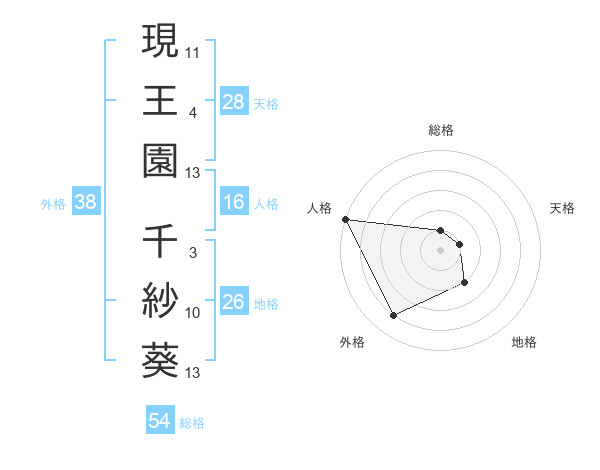 現王園 千紗葵さんを姓名の画数から五運を鑑定