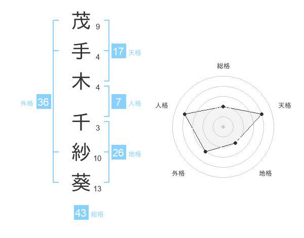 茂手木 千紗葵さんを姓名の画数から五運を鑑定