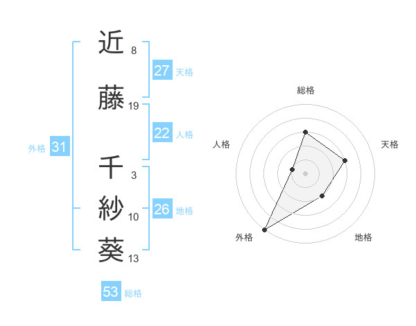 近藤 千紗葵さんを姓名の画数から五運を鑑定