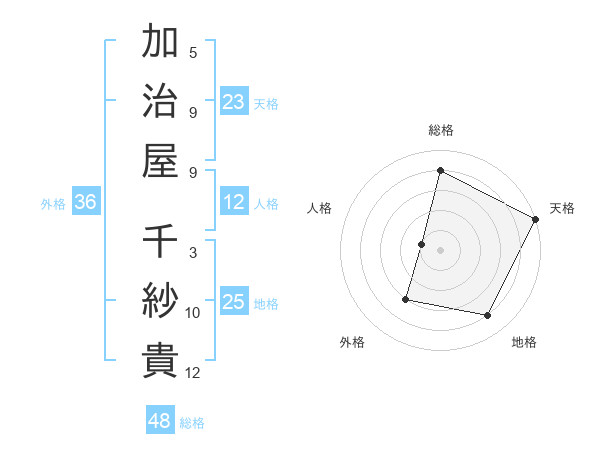 加治屋 千紗貴さんを姓名の画数から五運を鑑定