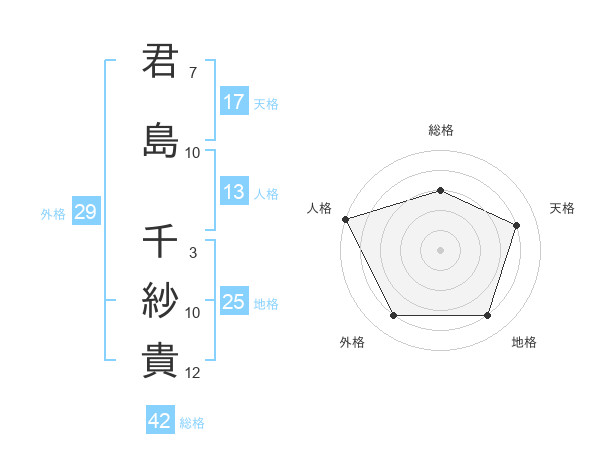 君島 千紗貴さんを姓名の画数から五運を鑑定