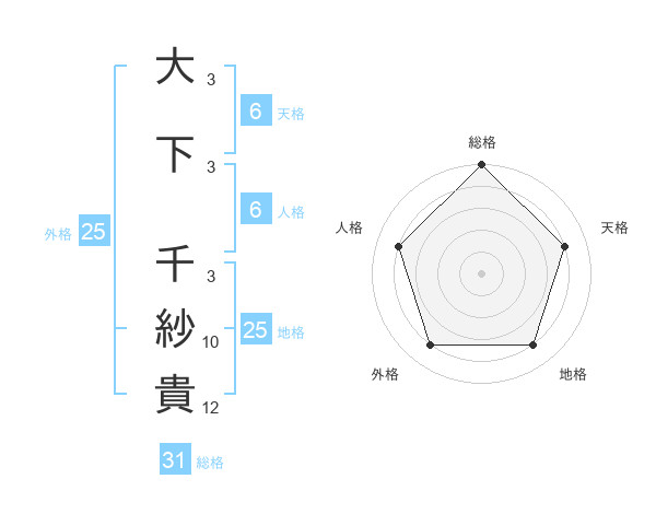 大下 千紗貴さんを姓名の画数から五運を鑑定