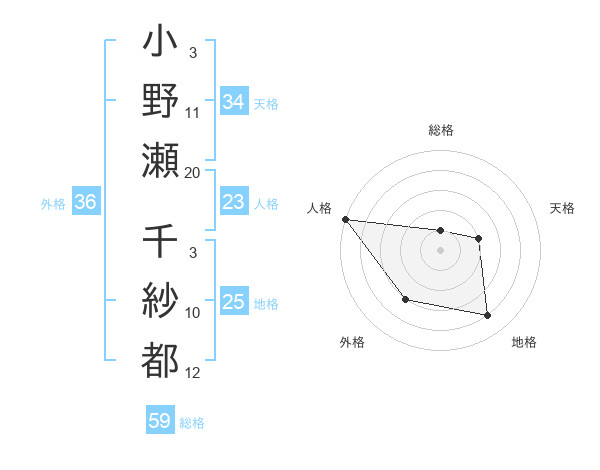 小野瀬 千紗都さんの地格は25画の4点!