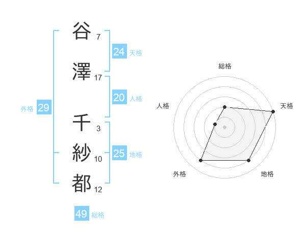 谷澤 千紗都さんを姓名の画数から五運を鑑定
