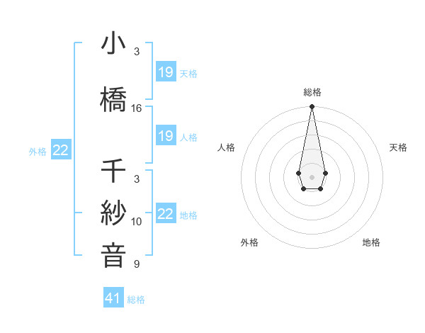 小橋 千紗音さんを姓名の画数から五運を鑑定