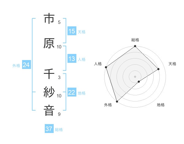 市原 千紗音さんを姓名の画数から五運を鑑定