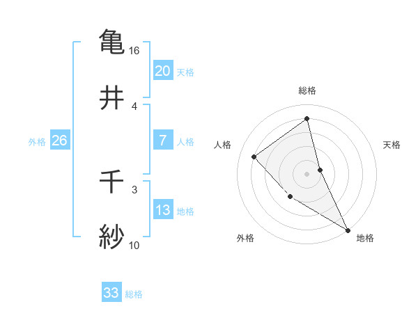亀井 千紗さんの天格は20画の1点!