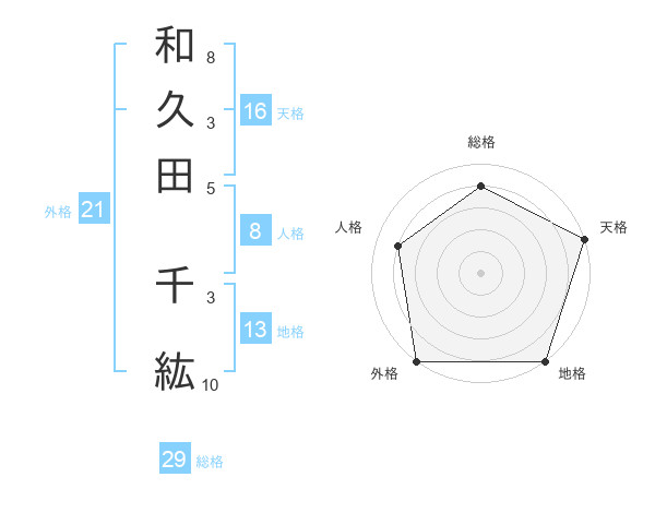 和久田 千紘さんの天格は16画の5点!