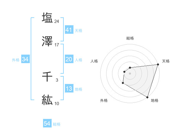 塩澤 千紘さんの天格は41画の5点!
