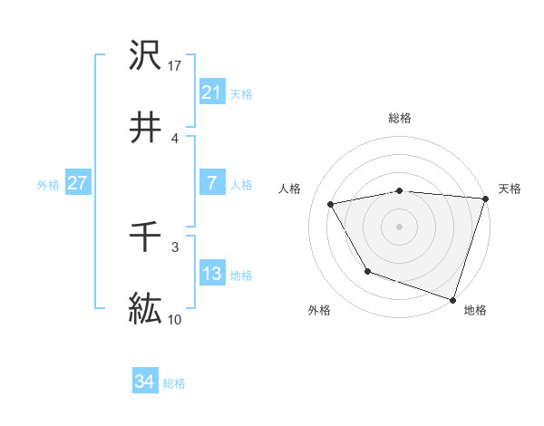 沢井 千紘さんを姓名の画数から五運を鑑定