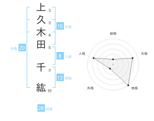 上久木田 千紘さんを姓名の画数から五運を鑑定