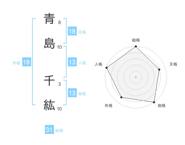 青島 千紘さんの総格は31画の5点!