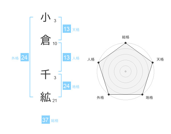 小倉 千絋さんを姓名の画数から五運を鑑定