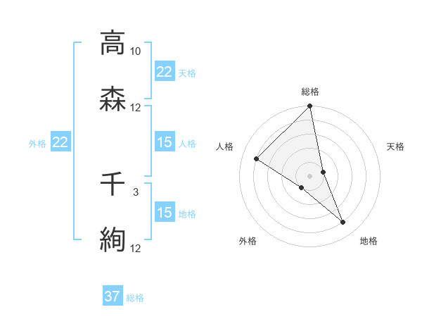 高森 千絢さんの総格は37画の5点!