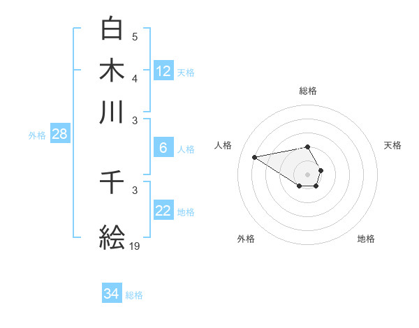 白木川 千絵さんを姓名の画数から五運を鑑定
