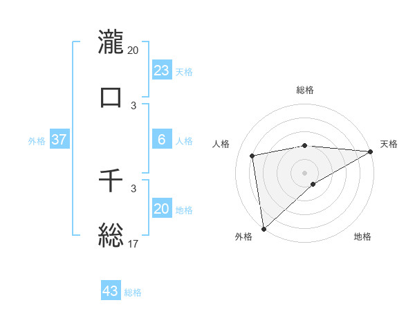 瀧口 千総さんを姓名の画数から五運を鑑定
