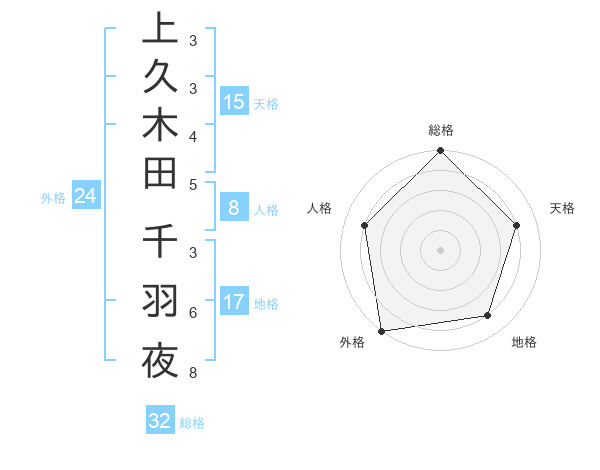 上久木田 千羽夜さんを姓名の画数から五運を鑑定