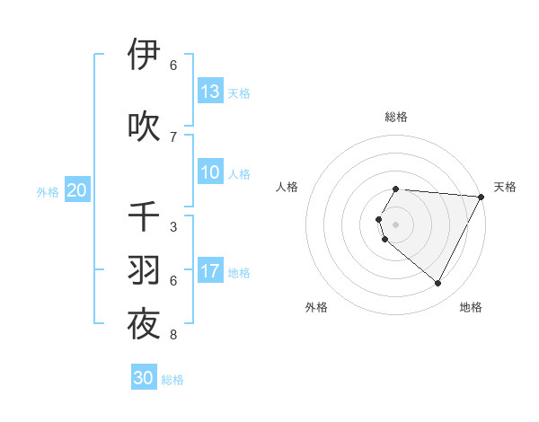 伊吹 千羽夜さんを姓名の画数から五運を鑑定