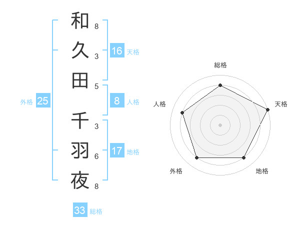 和久田 千羽夜さんを姓名の画数から五運を鑑定