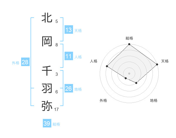 北岡 千羽弥さんを姓名の画数から五運を鑑定