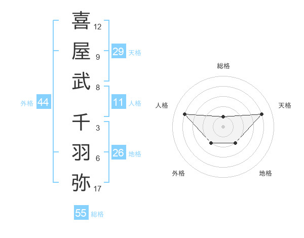 喜屋武 千羽弥さんを姓名の画数から五運を鑑定
