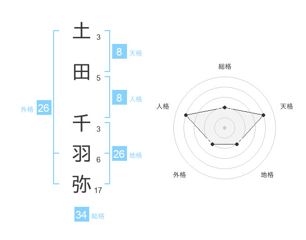 土田 千羽弥さんの総格は34画の2点!