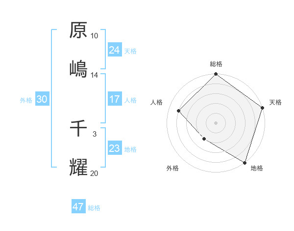 原嶋 千耀さんを姓名の画数から五運を鑑定