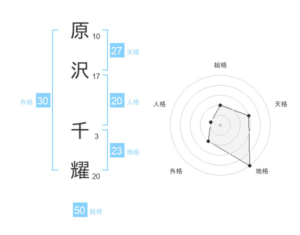 原沢 千耀さんの総格は50画の2点!
