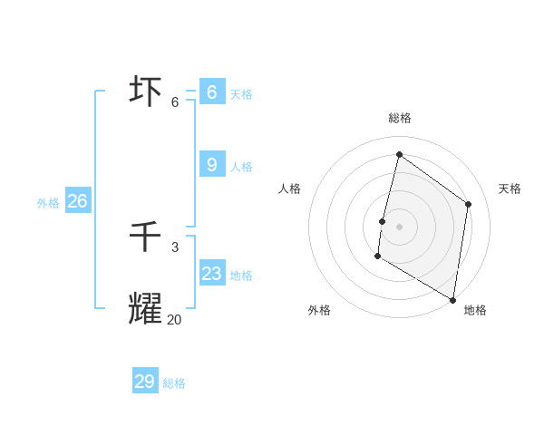 圷 千耀さんの総格は29画の4点!