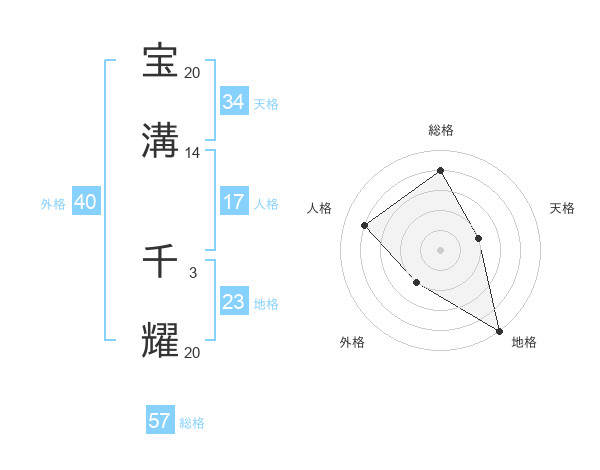 宝溝 千耀さんの天格は34画の2点!