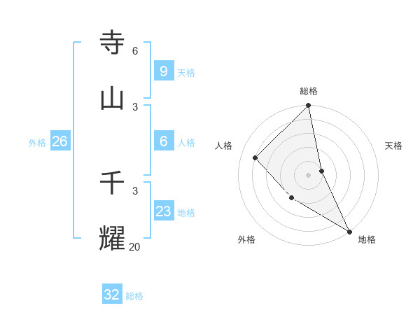 寺山 千耀さんを姓名の画数から五運を鑑定