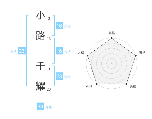 小路 千耀さんの外格は23画の5点!