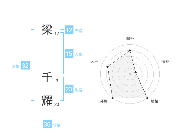 梁 千耀さんの総格は35画の4点!