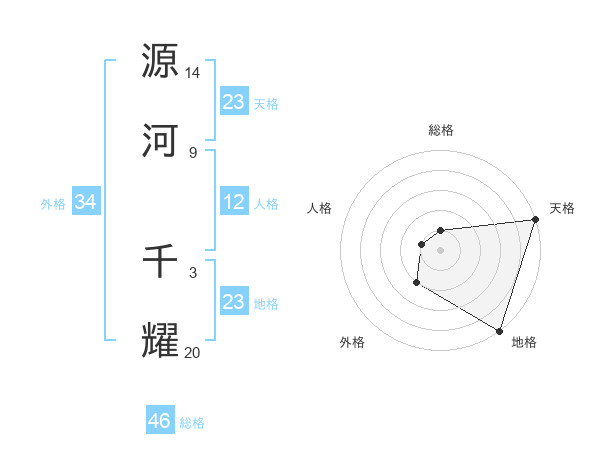 源河 千耀さんの天格は23画の5点!