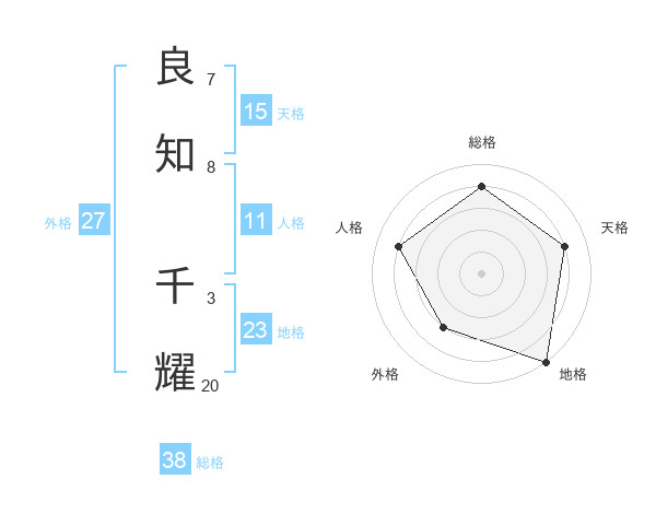 良知 千耀さんの総格は38画の4点!