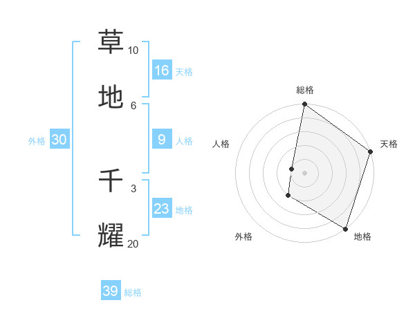 草地 千耀さんの総格は39画の5点!